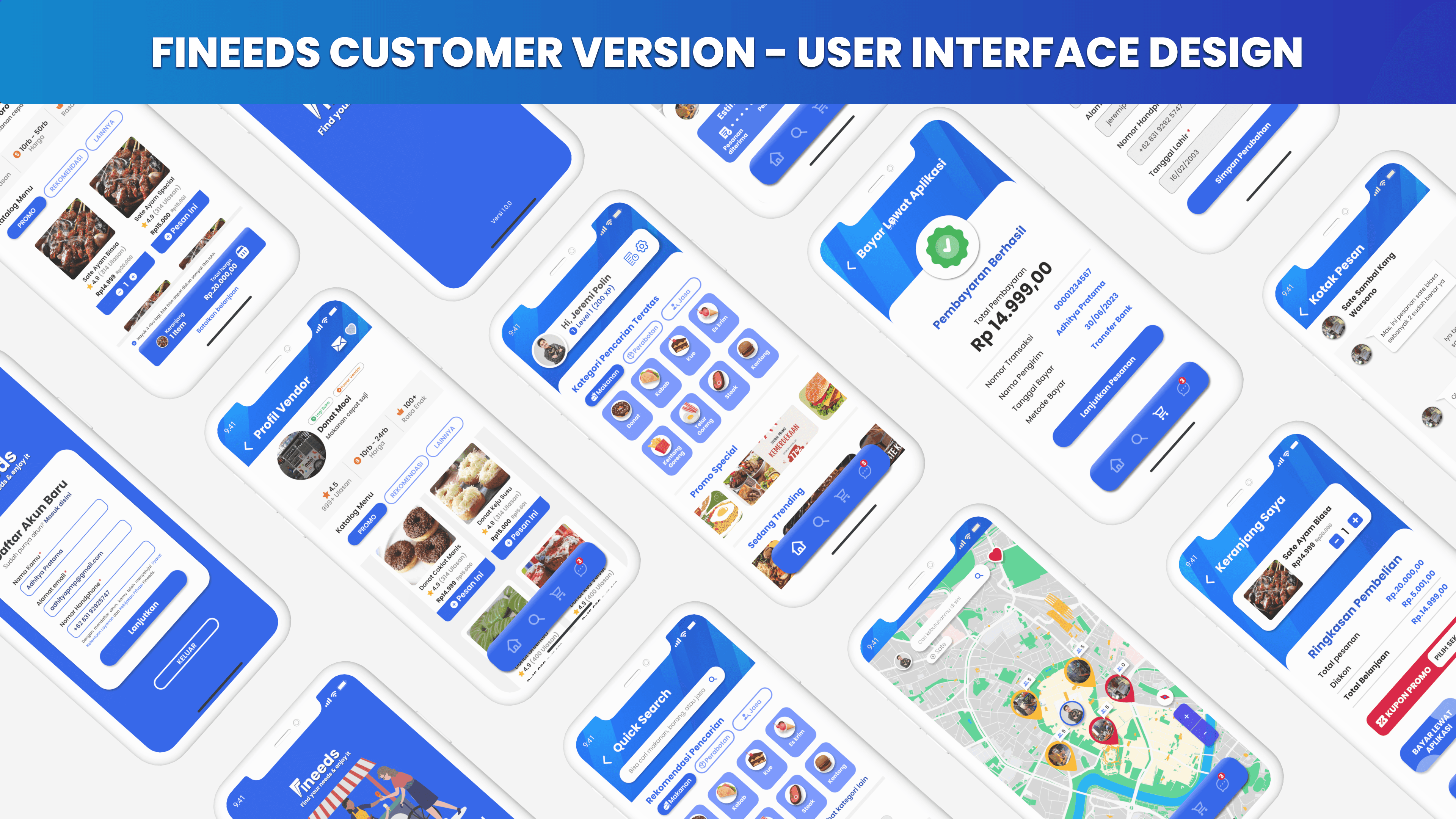 Fineeds is an application specifically designed to assist Street Vendors (PKL) and consumers. For street vendors, this app provides online ordering services, helps find new selling locations, and manages sales. For consumers, Fineeds allows quick product searches from street vendors, helps locate nearby vendors, and offers online ordering with various payment methods. The app utilizes GPS and machine learning technology to accurately track the locations of street vendors. Users can easily find the nearest vendors offering the products they are looking for. Additionally, Fineeds provides street vendors with recommendations for potential selling locations based on sales data and consumer preferences.